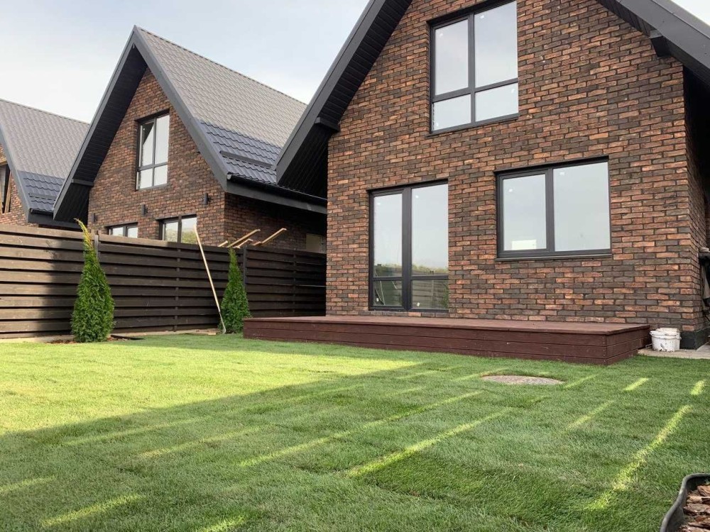 Комплектація всіх наших будинків йде під чистове оздоблення, з окремими комунікаціями для кожного власника і двір з озелененням під ключ.