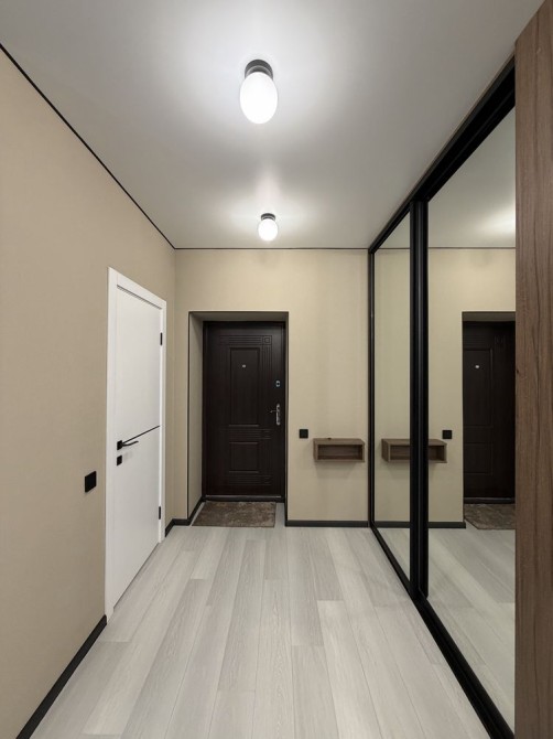 Просторий коридор, дві гардеробні:одна з кімнати та друга з коридору з безліччю місця для зберігання речей, світла та функціональна кухня із вбудованими меблями та технікою
