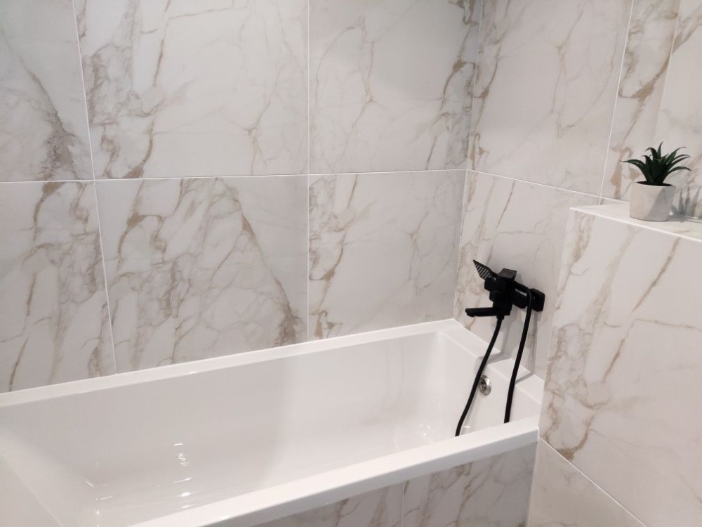 Водонагрівач та велика ванна.