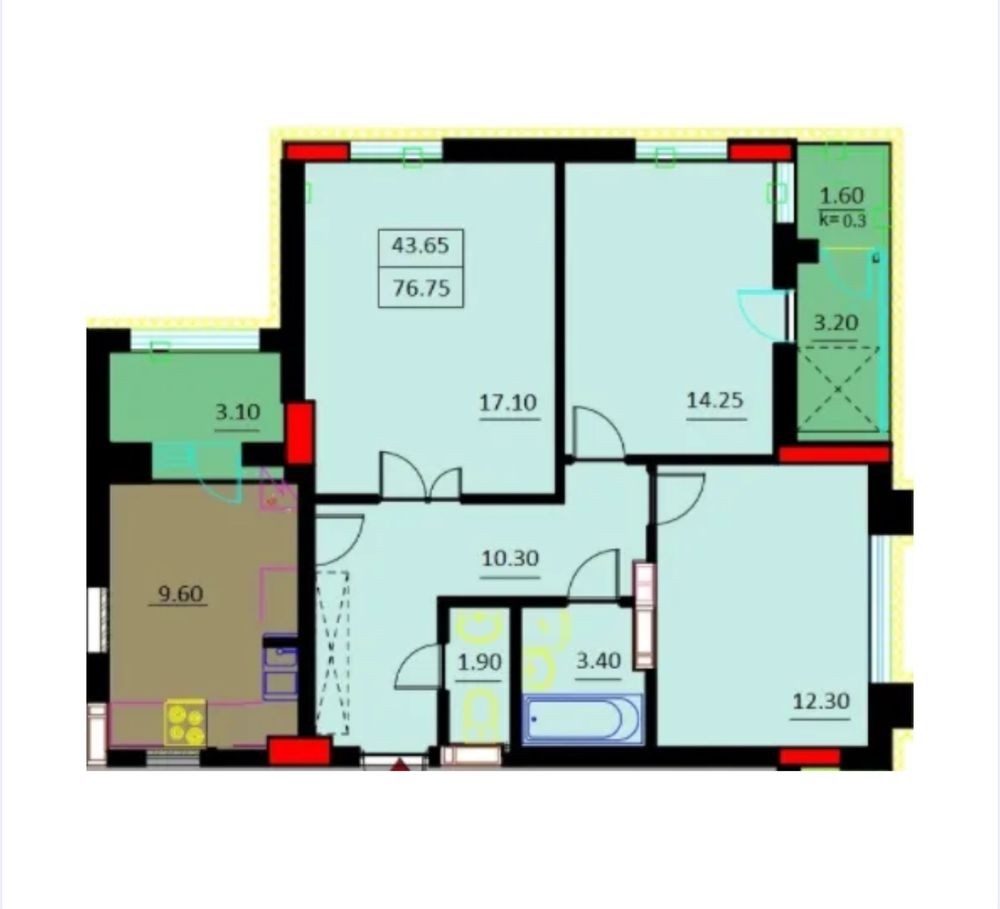 Трикімнатна квартира 76,8 м.кв.