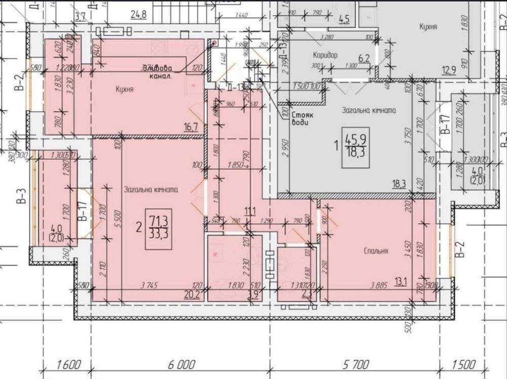 1 поверх 2 кімнатна, але з великою площею 71,3 кВ м