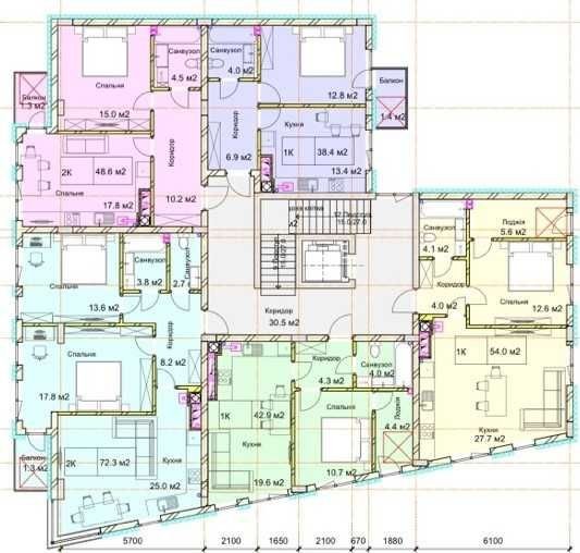 Однокімнатні: 38.4 м²- продана, 42.9 м², 54 м²,48.6м.кв
