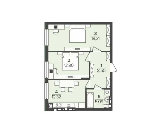 • Общая площадь 58.12 м2
