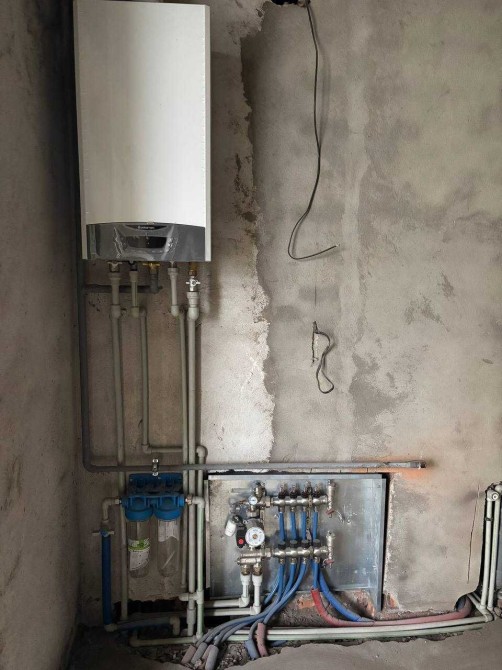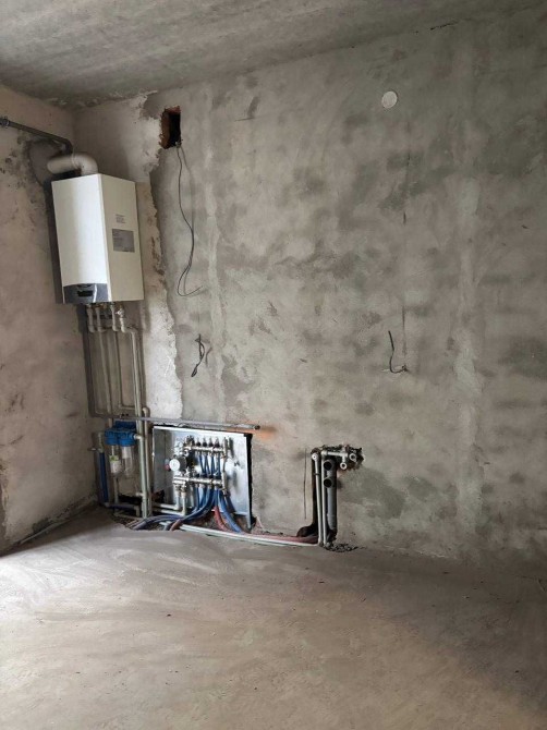 Зроблена розводка теплої підлоги ( коридор, кухня, с/в), електрики, встановлений котел та радіатори, вмонтована інсталяція, є унітаз та куплена плитка на коридор, кухню та с/в.