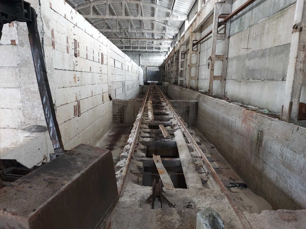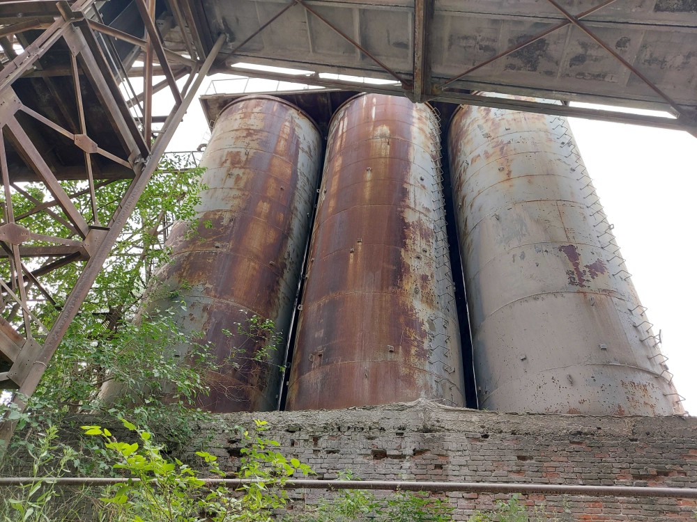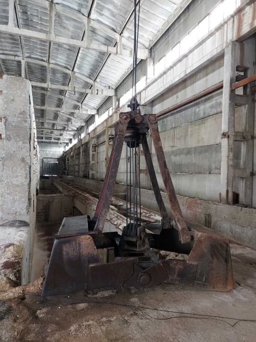 3) Цех S=2000квм. для приема сыпучих грузов (щебень, песок, уголь и т.д.). Имеет 7 бункеров по 900м3. В цех заходит Ж/Д ветка. Одновременно под выгрузку становятся 5 вагонов. Выгрузка происходит с помощью грейферного крана.