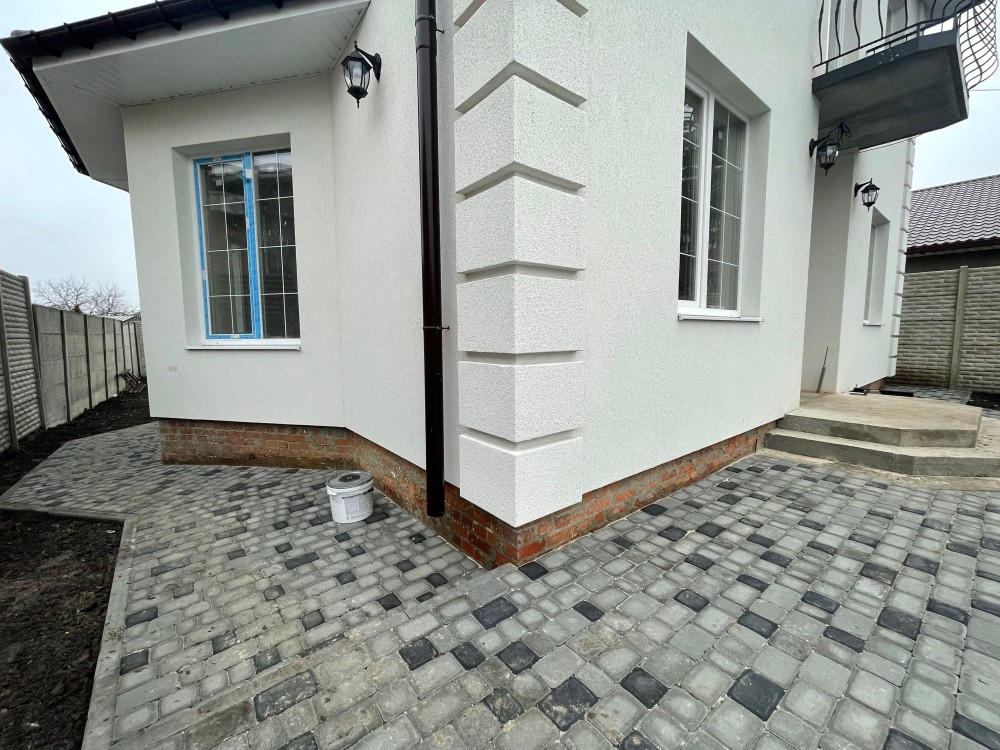 Выполнены работы по замощению центральной и фасадной части участка.