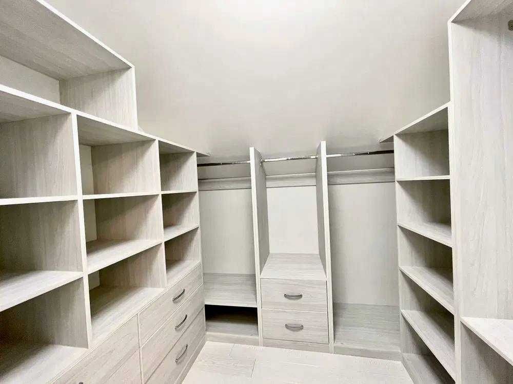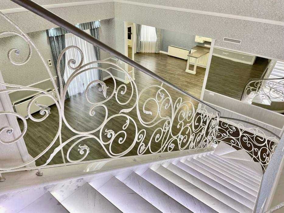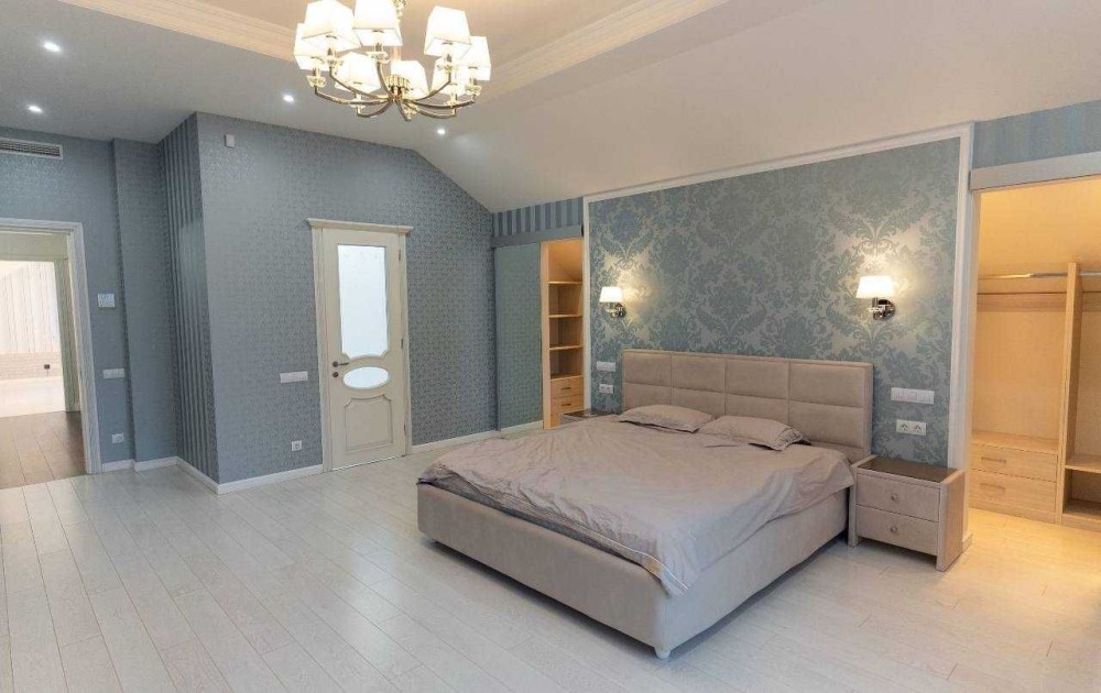 5 спален с гардеробными, 4 санузла, кабинет. Есть подвал.
