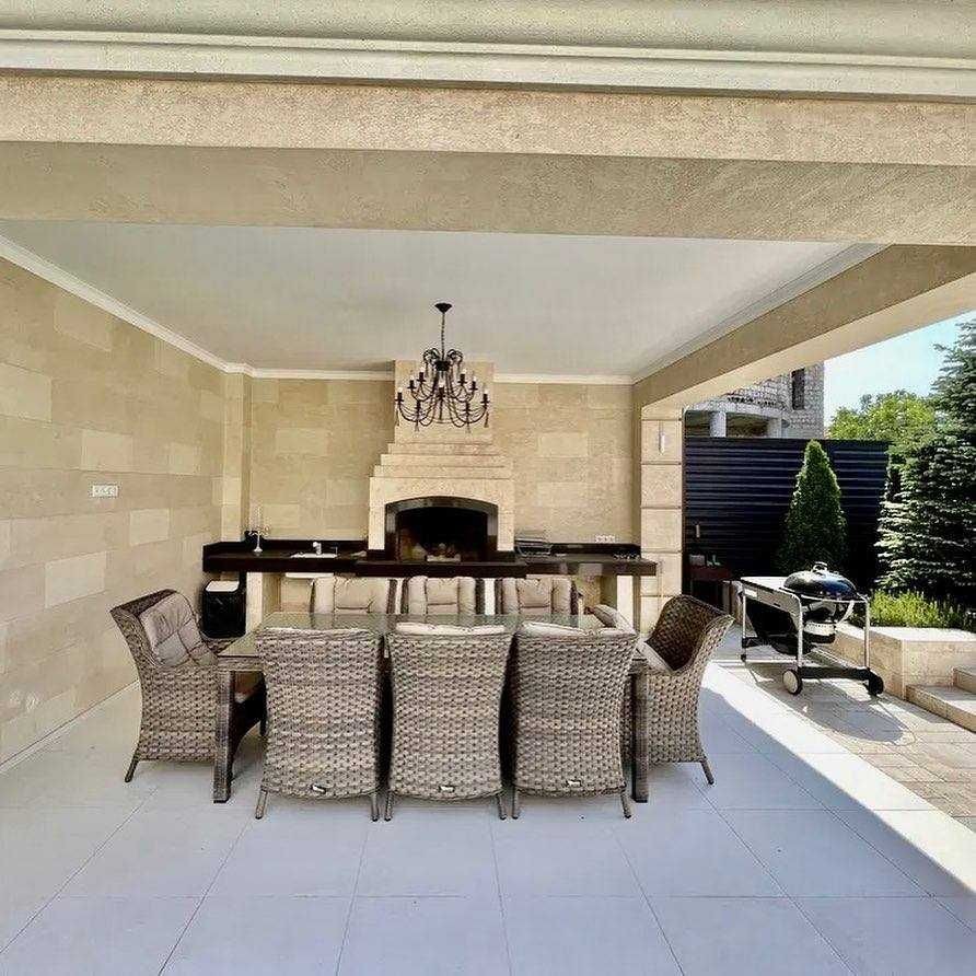 Большая кухня, столовая. Гостиная с настоящим камином. Терраса.