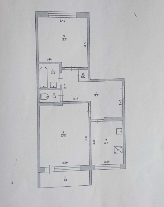 • Площадь кухни 6.9 м2
