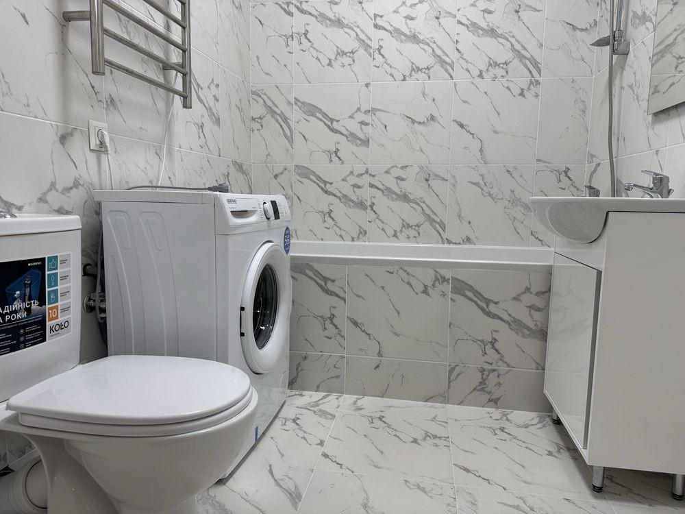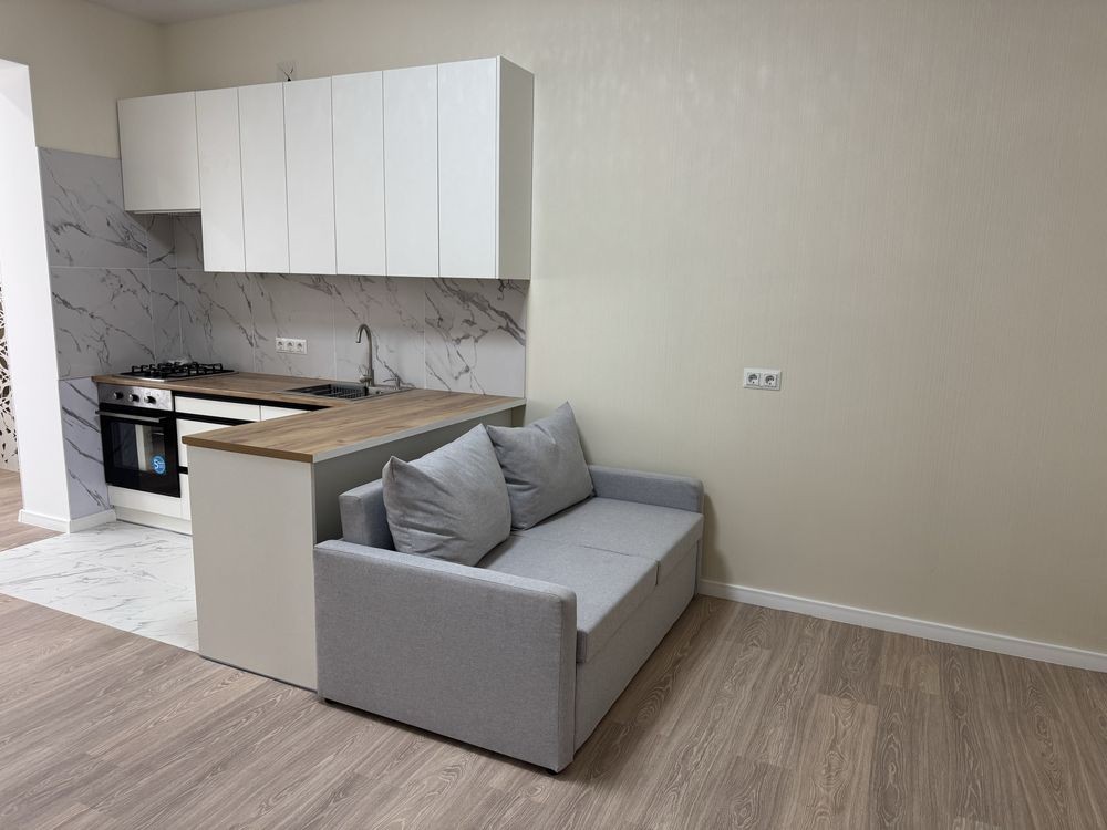 Простора, з новим стильним ремонтом, меблями та раціональним плануванням.
