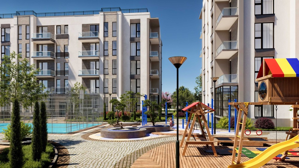 -Велика закрита прибудинкова територія, спортивні та дитячі майданчики.