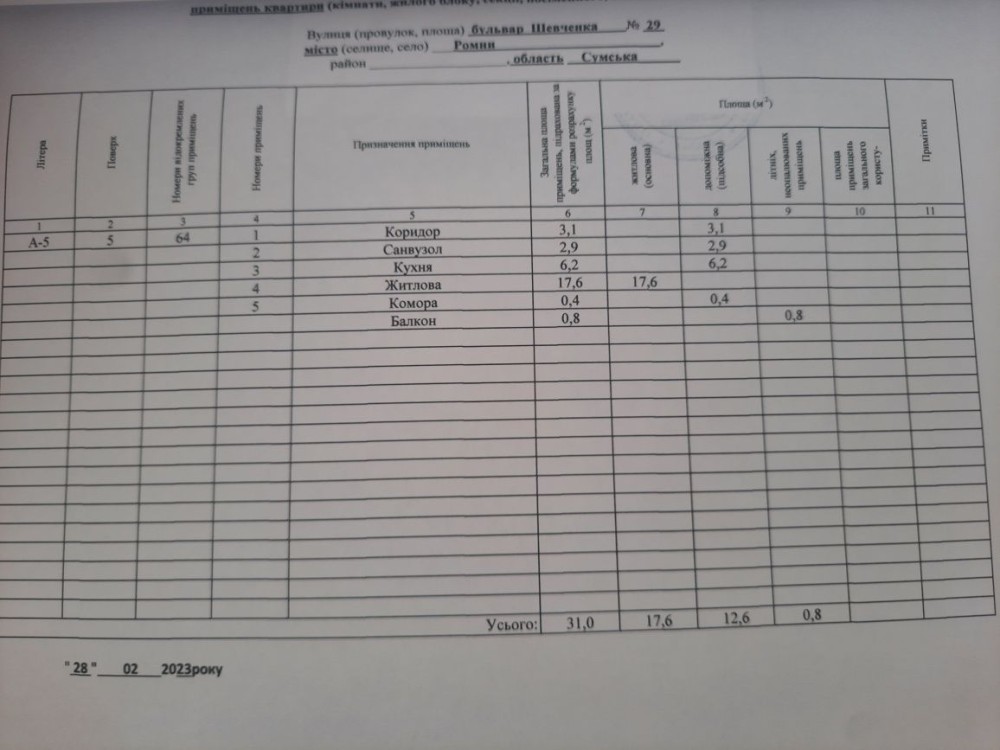 • Общая площадь 31 м2