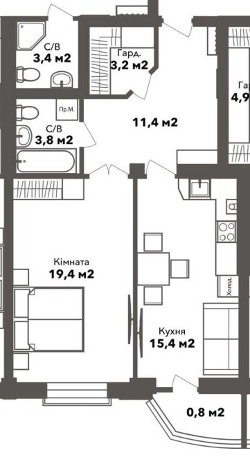 - Кімната 19,5 м2