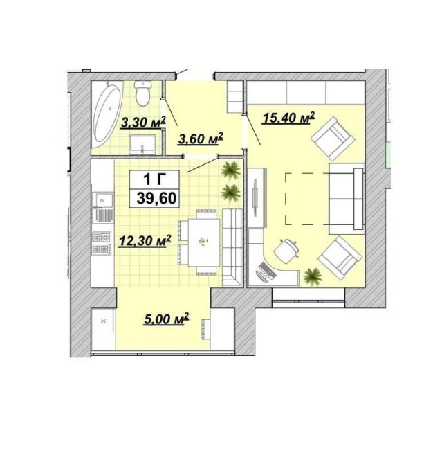 • Общая площадь 39.6 м2