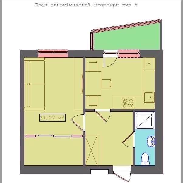 Затишна квартира у новому будинку, загальна площа 37,3кв.м, житлова -16 кв.м. Квартира має балкон з виходом на терасу.