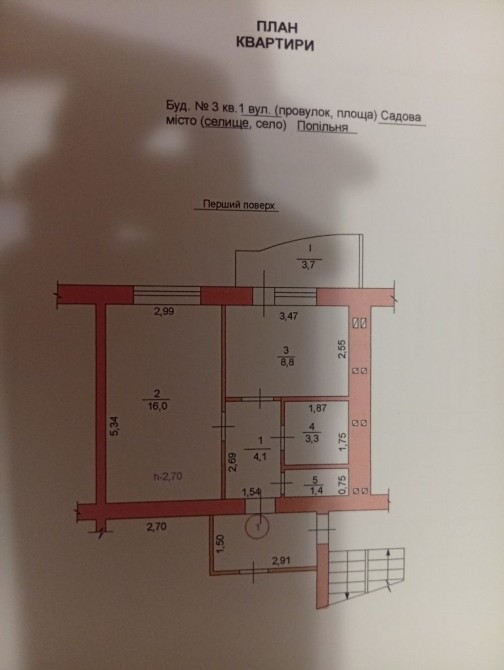 Однокімнатна квартира сщ. Попільня вул. Садова, 3