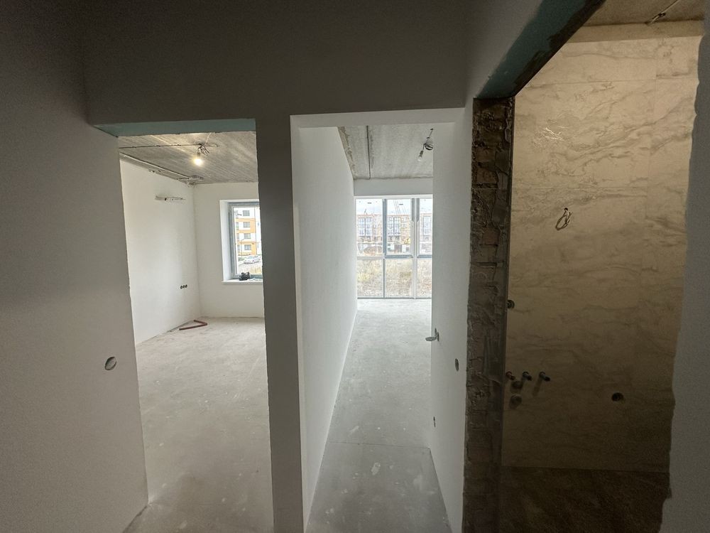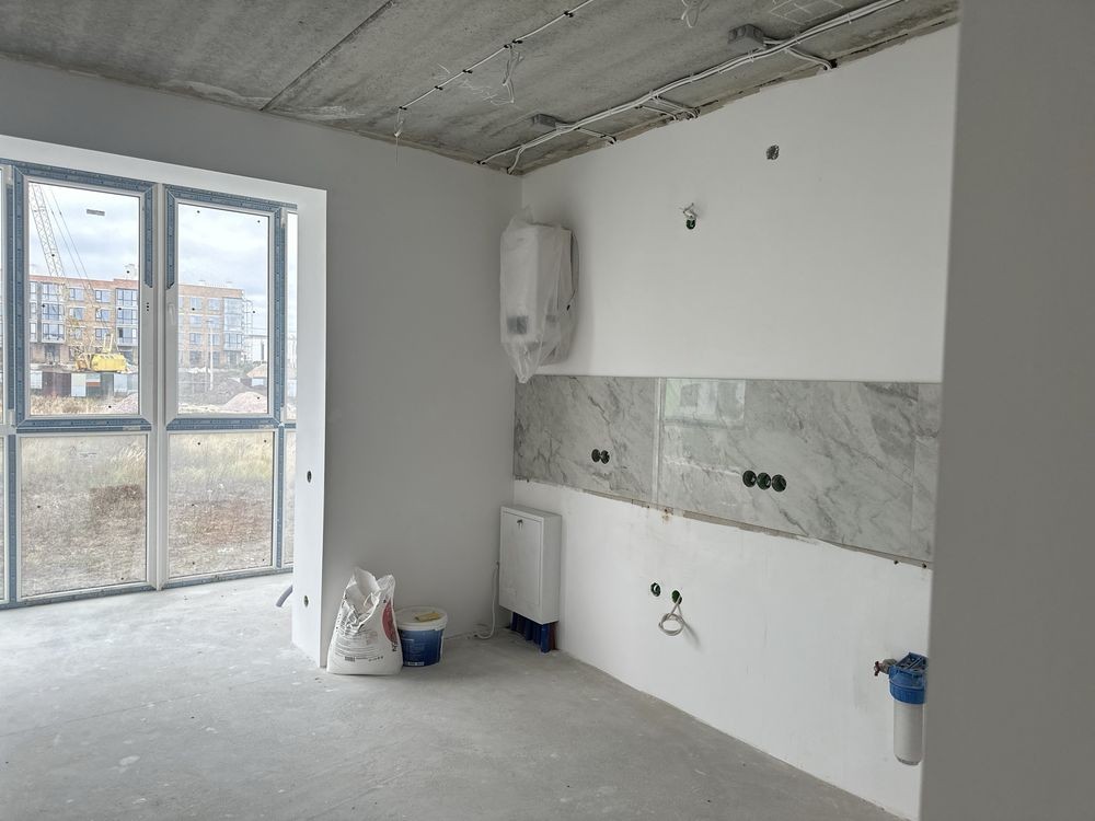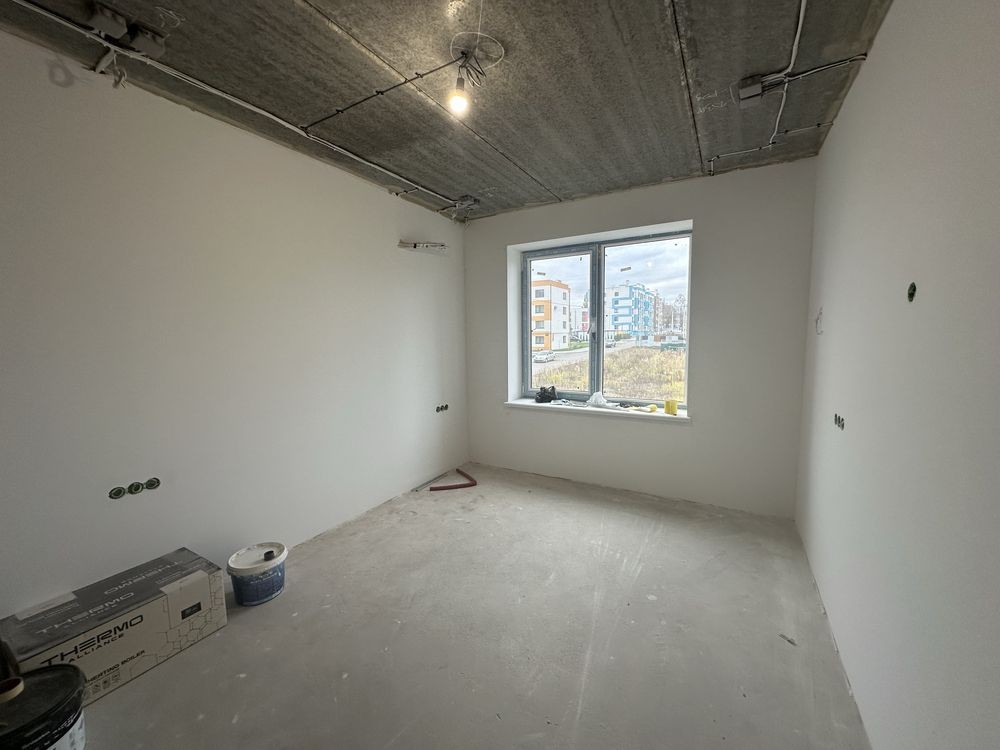Стан після будівельників: стяжка, штукатурка, усі комунікації заведені та розведені по квартирі. Встановлено котел, якісні вікна та броньовані вхідні двері.