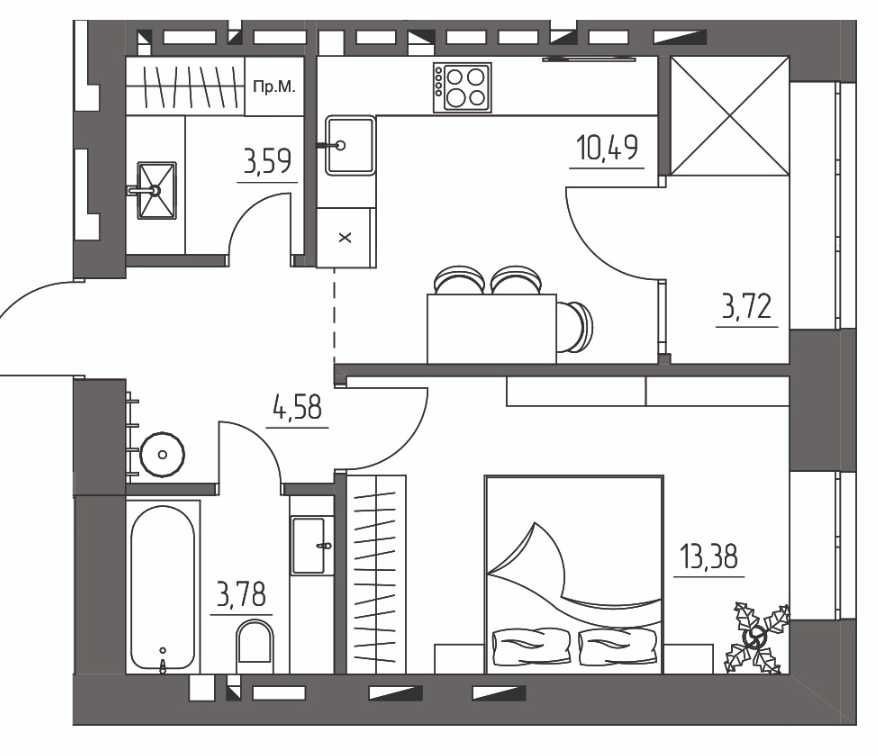 • Общая площадь 39.54 м2