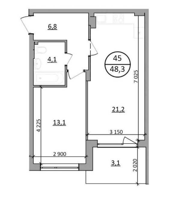 • Общая площадь 48.3 м2