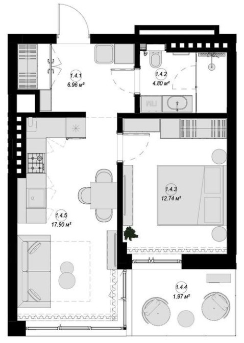 • Однокомнатная