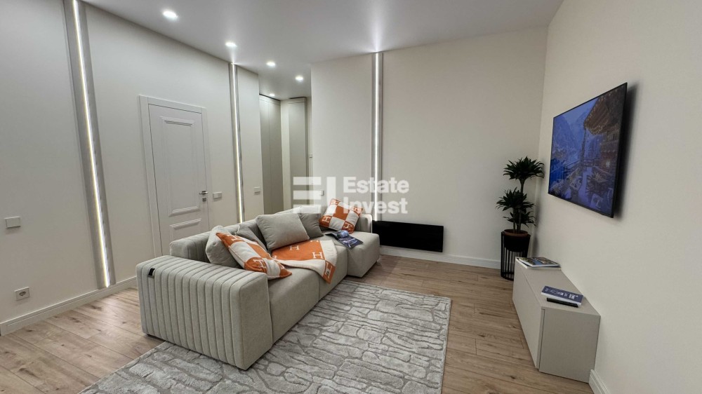 У квартирі виконано новий дизайнерський ремонт у світлих тонах. Усе оснащення абсолютно нове та перебуває на гарантії. Встановлено вбудовану кухонну техніку преміальних брендів, а також пральну й сушильну машину.
