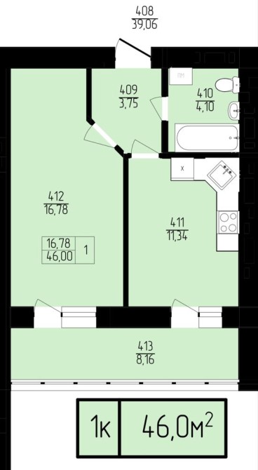 • Общая площадь 46 м2