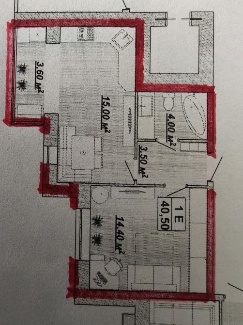 • Общая площадь 40.5 м2
