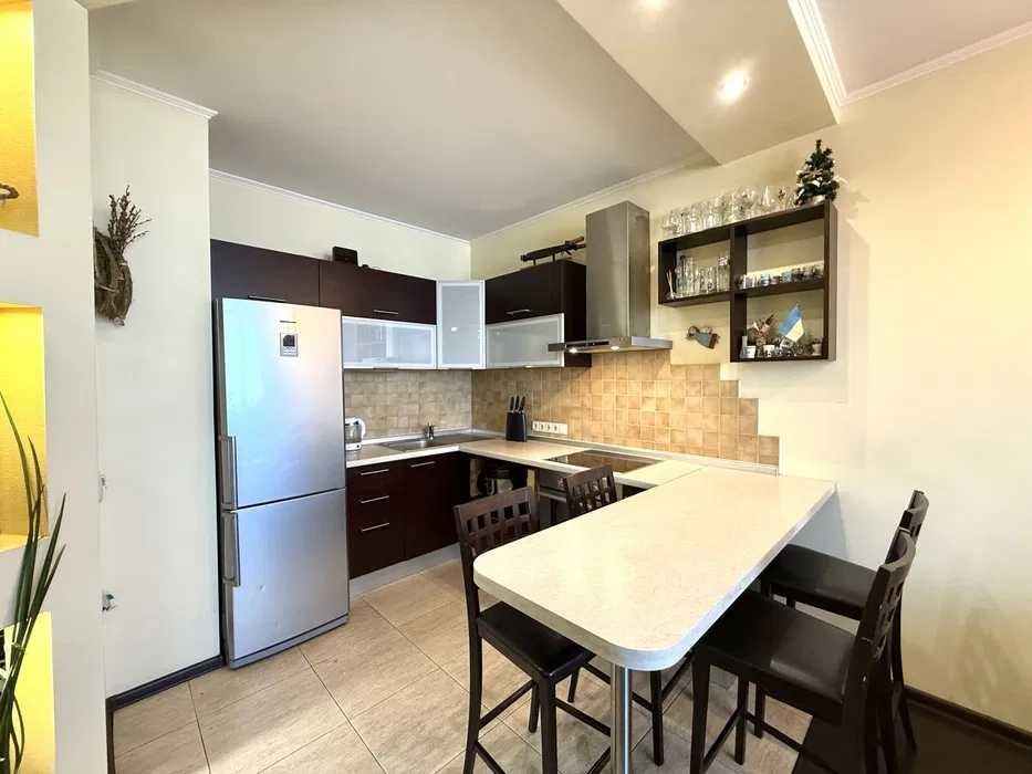 Квартира повністю укомплектована меблями та технікою, є гардеробна.