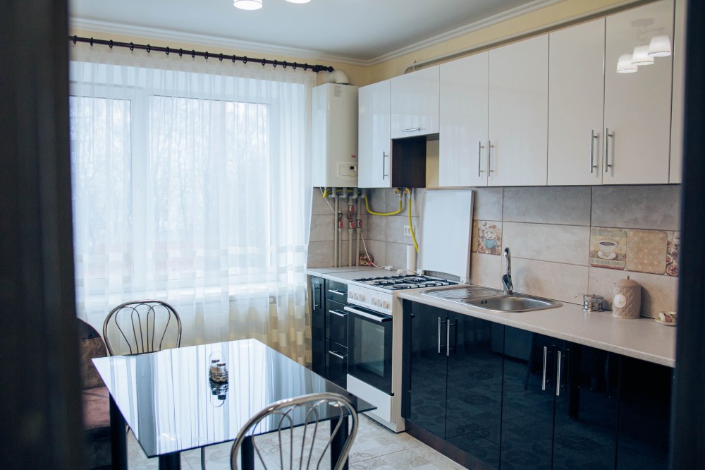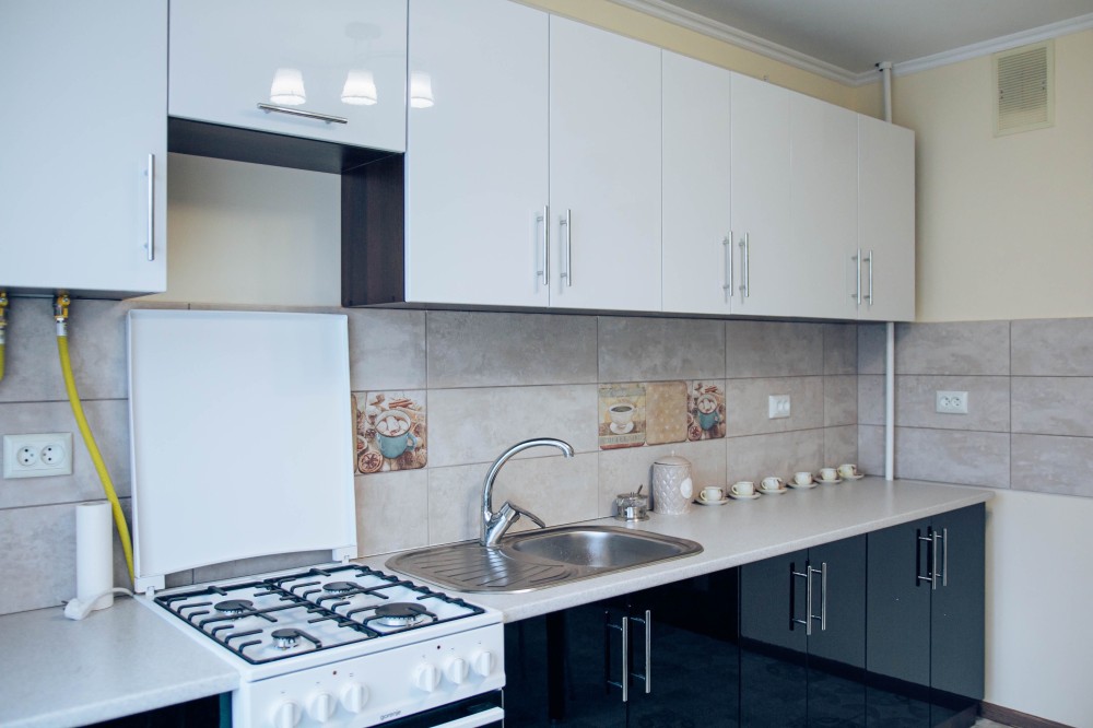 кухня з плитою та духовкою