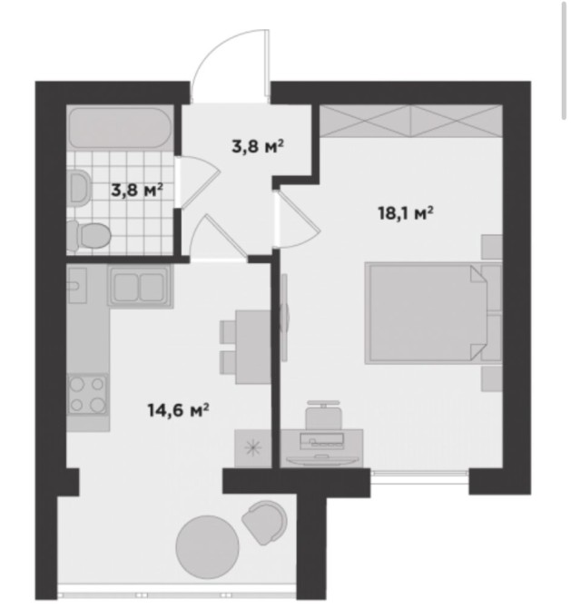Однокімнатна на низькому поверсі мінімальне оформлення