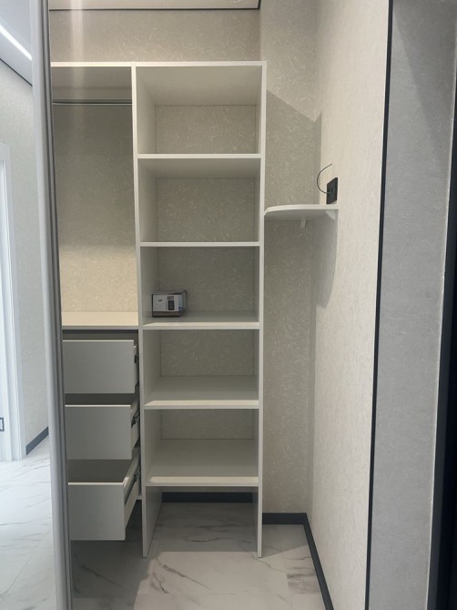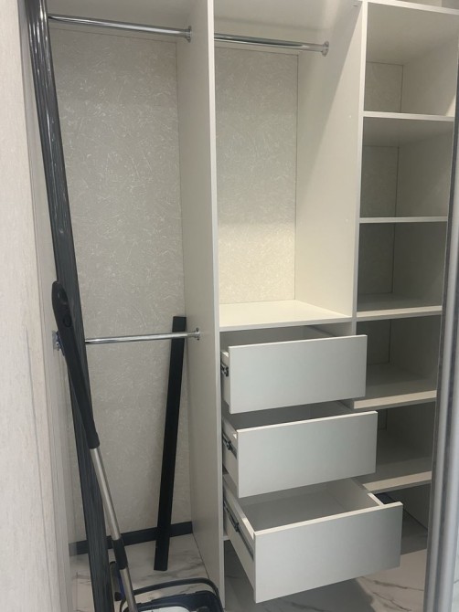 Простора гардеробна, вбудована кухня, велике двоспальне ліжко, в санвузлі встановлена ванна, кондиціонер, шафи купе, стелі с підсвіткою, великі панорамні вікна, на все встановлені лічильники: вода, світло, опалення, є балкон