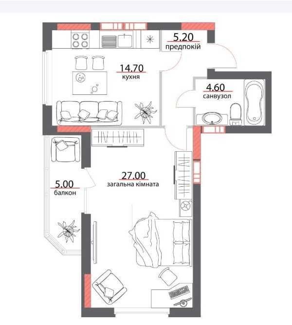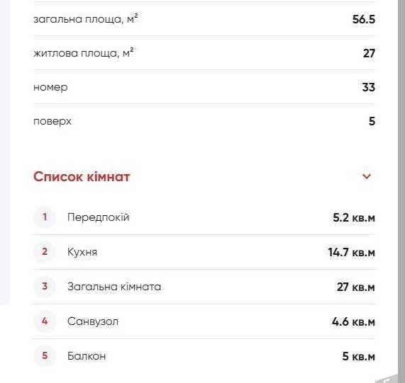 Загальна площа - 56,5м2