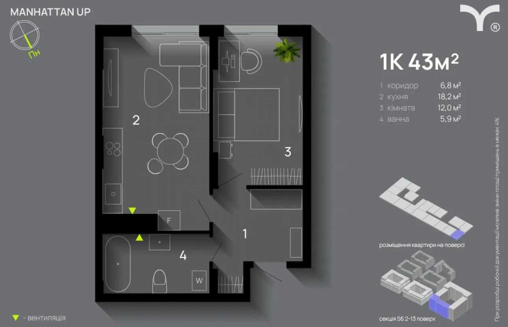 ЖК Manhattan Up - це житловий комплекс комфорт-класу, який розташований біля міського озера. Двір без автомобілів з охороною та відеоспостереженням 24/7, що забезпечує приватність та безпеку, сучасні інтерактивні дитячі та спортивні майданчики, поруч школа та садок, магазини.