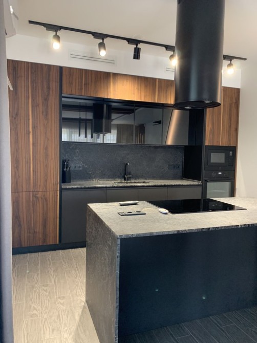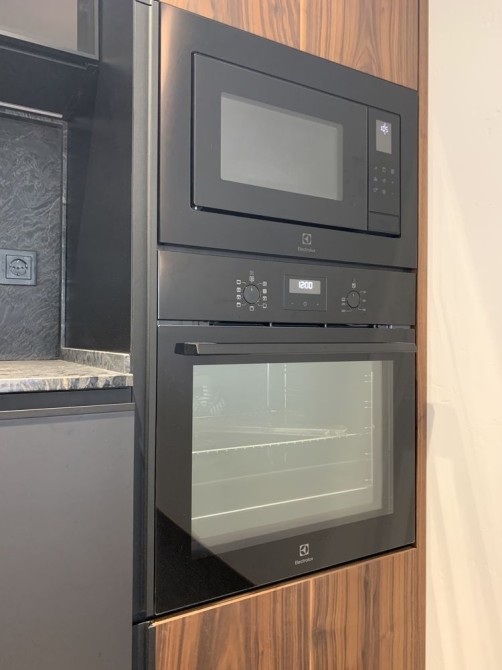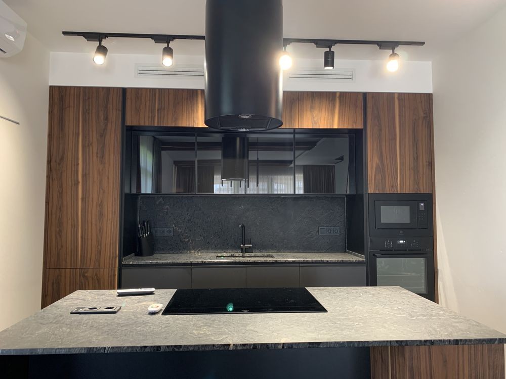 У будинку: Кухня-студія з виходом на терасу. Вбудовані кухонні меблі з технікою Electrolux, острівець ...