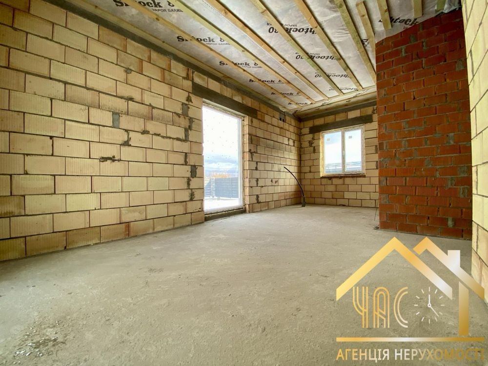 Будинок знаходиться на земельній ділянці в 10 соток. Земельна ділянка приватизована, має прямокутну форму 25 на 40 м, майже горизонтально рівна, різниця по діагоналі складає не більше 30 см по висоті. Будинок має монолітний армований ленточный фундамент. При армуванні фундаменту та стін використовувалась арматура 1,2 см. Стіни виконані з пеностирольних блоків де всередину вставлена арматура і залита бетоном. Перекриття між першим та другим поверхом та горищем виконано з дерев'яних балок 20 на 30см. Будинок покритий металочерепицею. стоять металопластикові вікна та технічні вхідні двері. На земельній ділянці знаходиться приватна водяна скважина та заведена вода в будинок. Будинок підключений до зовнішнього електропостачання з величиною прогнозованої приєднаної потужності 7 кВт напруга приєднання 380 B. Зовнішній розмір будинку по ширині складає 11,5 м, по довжині 13,4 м. Жила площа першого поверху складає 127,29 м². З них кухня складає 32,63 м², зала складає 36,47 м², кімната складає 23,13 м², туалет складає 11,52 м² 52, коридор займає 23,54 м². Висота стелі 3 м. Другий поверх мансанровий, де по площі підлоги має таку саму квадратуру 127,29 м², як і перший поверх, але в кожній висота однієї зовнішньої стіни складає 1,75 м за рахунок нахилу даху. Розташування кімнат ідентичне до першого поверху. Висота стелі 2,75 м. За рахунок пеностирольного покриття стін сам будинок дуже є енергозберігаючим і потребуватиме невеликі витрати на обігрів. Oбігрів будинку планувався електричний, так як будинок має низьку втрату тепла, але і можливі інші варіанти обігріву, такі як газ або комбінації дров'яного каміну та електрообігріву. Газопровід іде по вулиці. За рахунок великих вікон будинок отримує достатньо багато сонця і кімнати всі світлі. Великі кімнати та коридори дають багато креативного простору, щоб створити житло яке підходить власне для вас. Контактні дані WhatsApp: +4917630793718 Email: skorba-oleg@ukr.net Oleg
