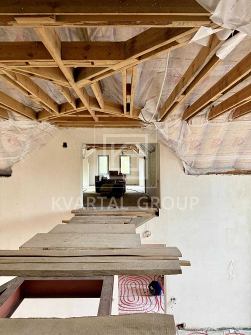 Будинок площею понад 300 м² зведений із теплого блоку Porotherm (44 см), має монолітний утеплений фундамент на 1,2 м, дах із черепиці «Осінній лист» вартістю 50 000 €, яка змінює відтінок залежно від сезону.