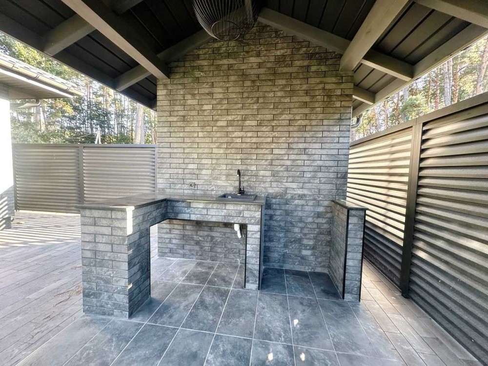 Будинок дуже якісний побудований з червоної, пустотілої цегли, утеплений 100 мм мінеральної вати та обкладений клінкерною плиткою, що надовго збереже його зовнішній вигляд. Вікна з 80 профілем, теплозберігаючою і сонцезахисною функцією, розсувна система з кухні вітальні. Такі матеріали будівництва дозволять зберегти тепло у зимовий період та даруватимуть прохолоду влітку.