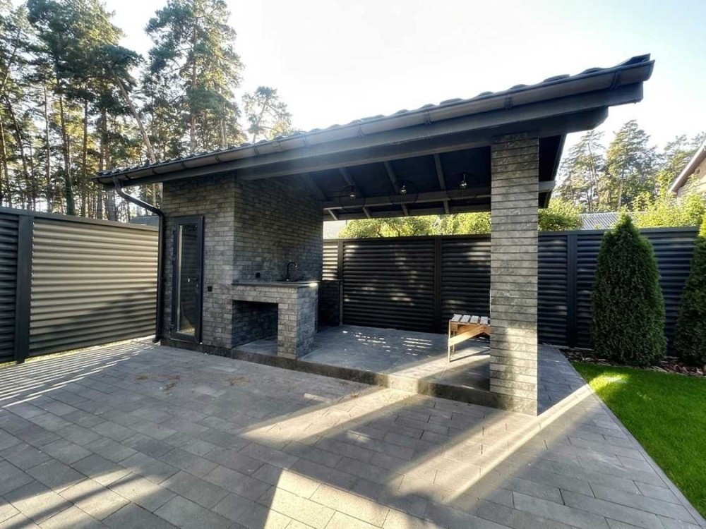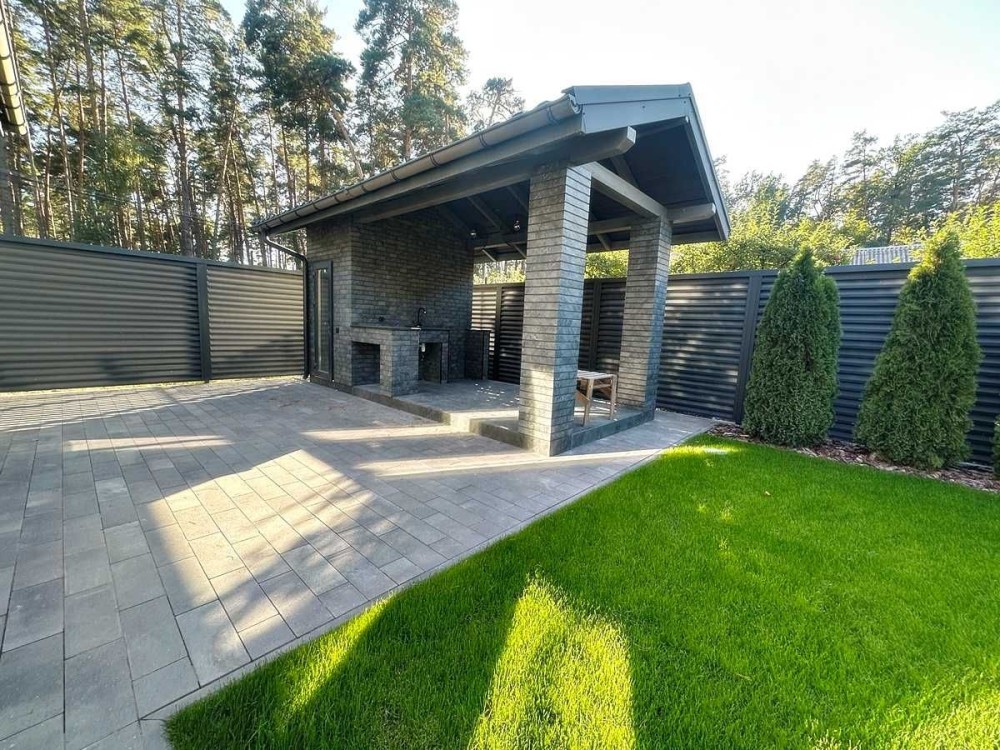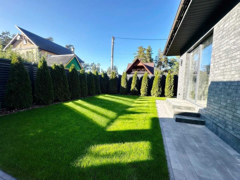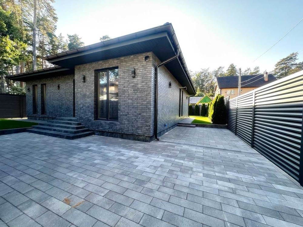 Одноповерховий будинок серед сосен з ремонтом. 118 м2 4 сотках. Навколо дуби та сосни, новий приватний сектор, зручний асфальтований підʼїзд, огороджена стильним металевим парканом жалюзі з відкатними, автоматичними воротам.