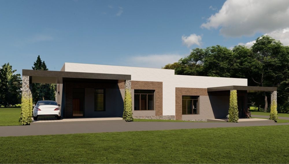 - Планування: одноповерховий, сучасний проєкт