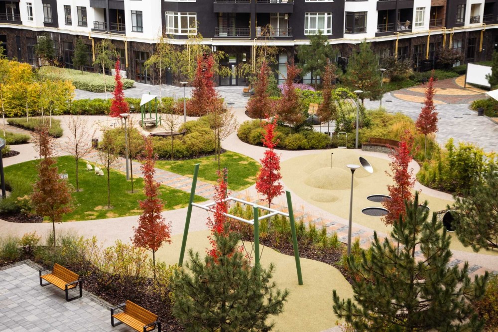 Школа, кав’ярні, магазини, поштомат, дитячі та спортивні майданчики