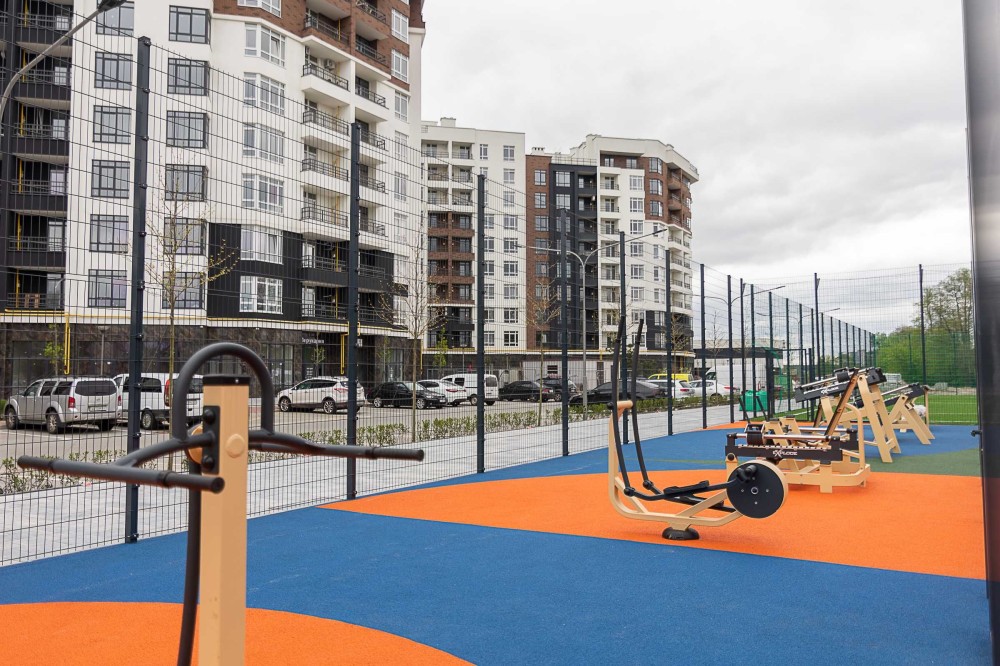 У дворі — Sport City: футбольне поле, баскетбольний майданчик, тенісний корт і зона воркаут