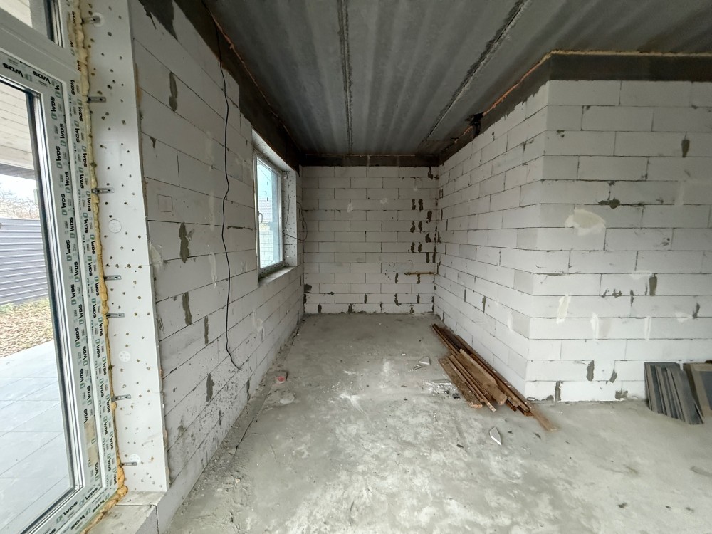 Будівництво: газоблок, утеплення 100 мм, фундамент монолітно-стрічковий, металочерепиця, енергозберігаючі вікна, перекриття утеплене мінеральною ватою 200 мм