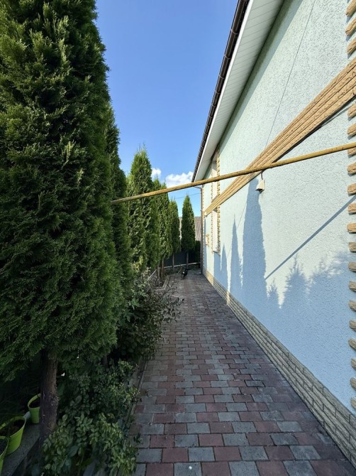 Повністю облагороджена територія, паркан на фундаменті по всьому периметру, посаджені клумби, туї, є навіс, просторий зелений сад