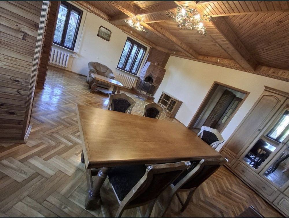 Камін діючий, дубові столи, гарний буфет.