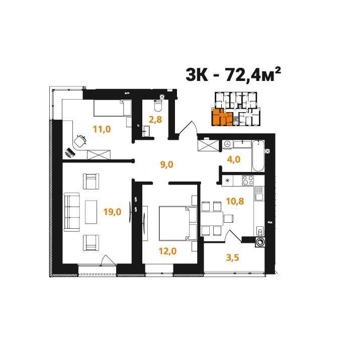 • Общая площадь 72.4 м2