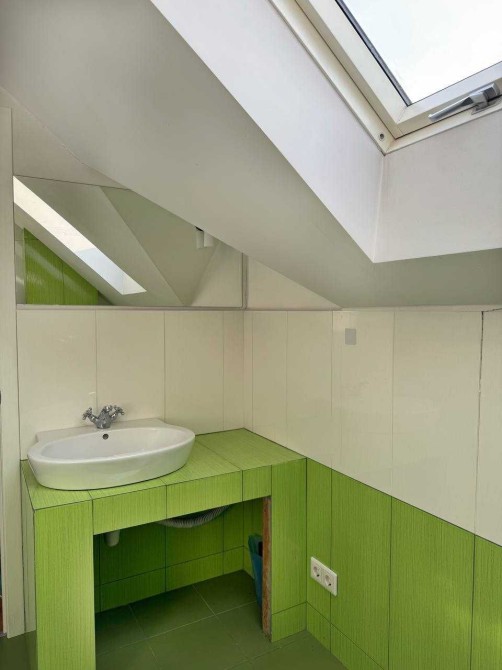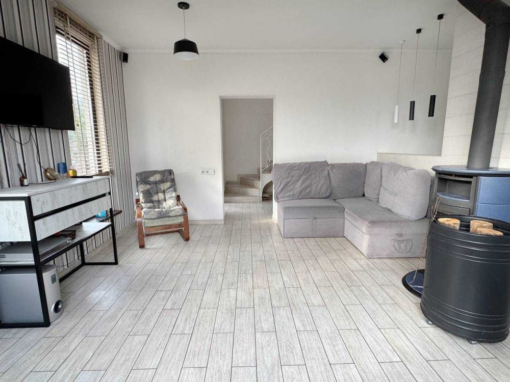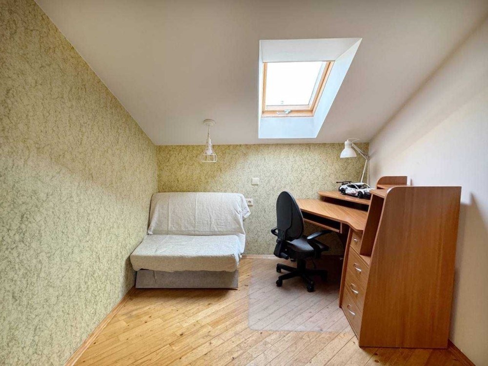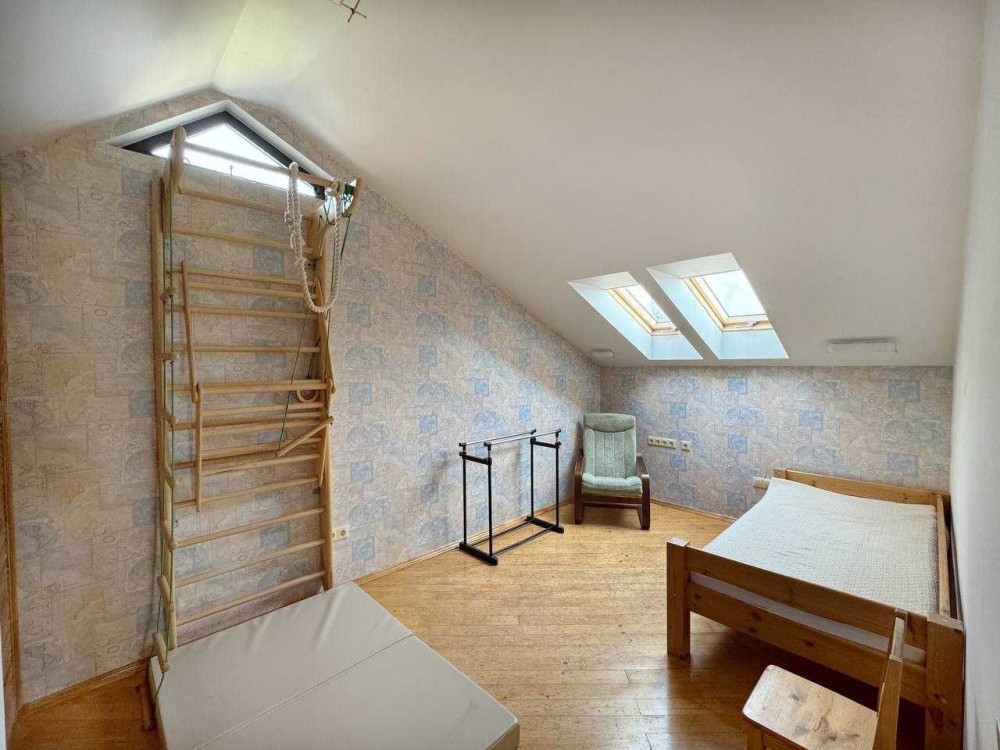 На другому поверсі спальня з виходом на балкон, двоспальне ліжко, простора шафа для одягу, телевізор. Дитяча кімната з гіркою та матами. Кабінет або гостьова. В спальні і дитячій інвекторні кондиціонери працюють до -15. Простора ванна кімната.