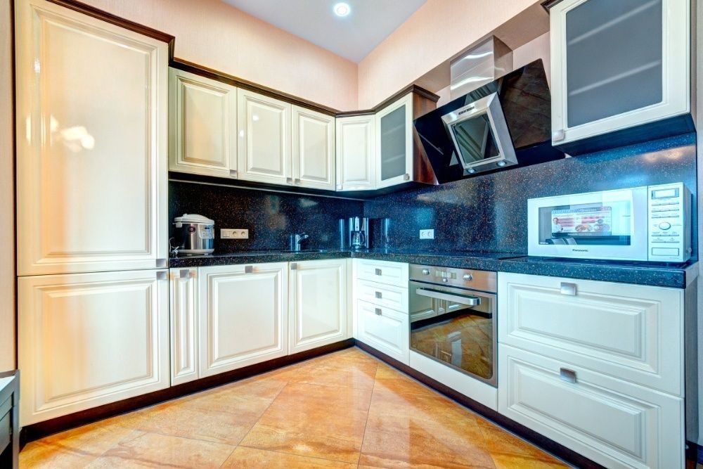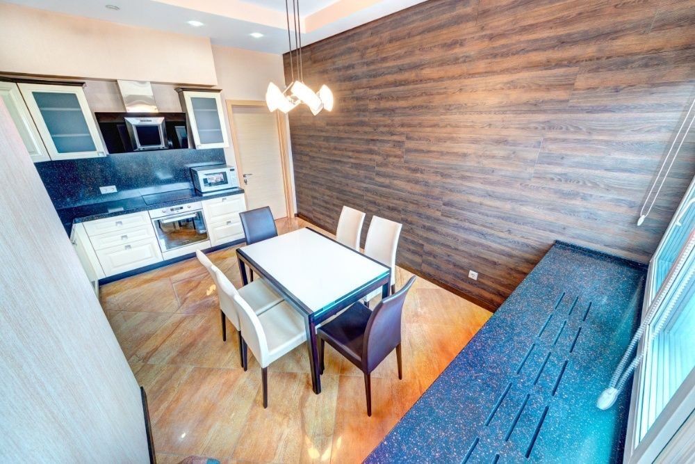 • Окрема кухня-їдальня з преміальною технікою та великим обіднім столом.