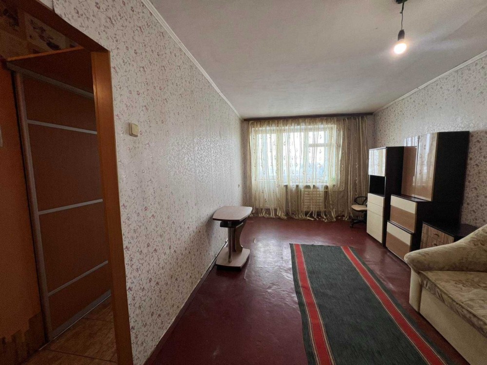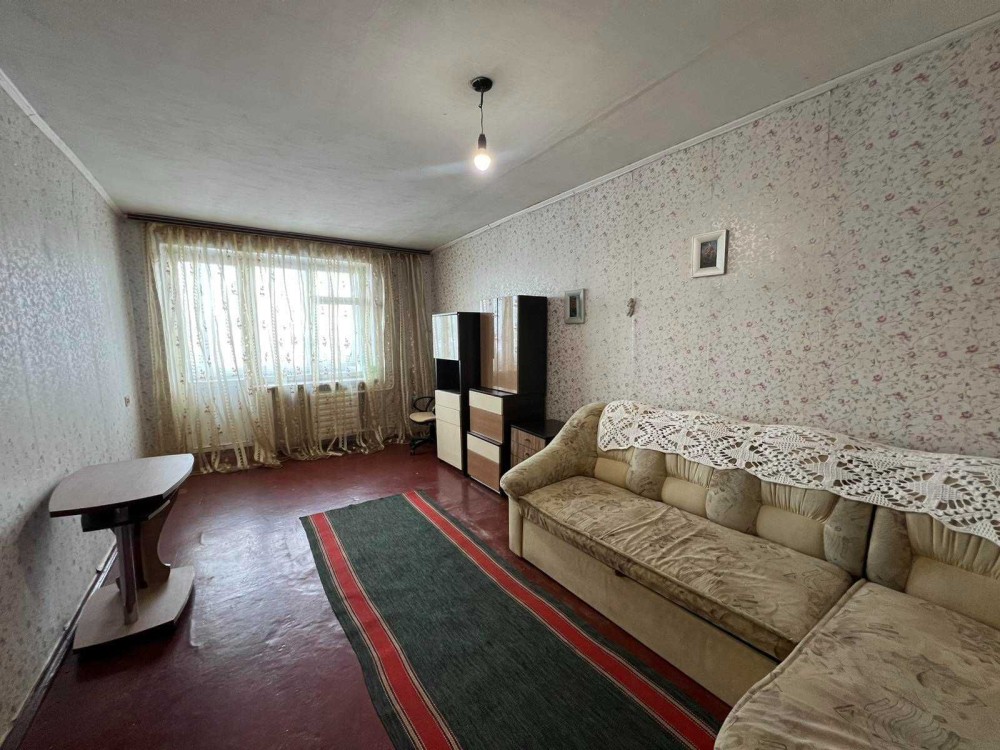 Кімната простора світла з виходом на засклений балкон. Квартира тепла, не кутова, з гарним видом з вікон у двір.