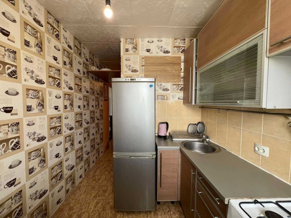 Кухня укомплектована: газова плита, витяжка, меблі. Санвузол суміжний, ванна. Мебльована: диван, шафа у прихожій, тумби, кухонний гарнітур. Є холодильник, електро чайник, пральна машина не працює. Інтернет є.