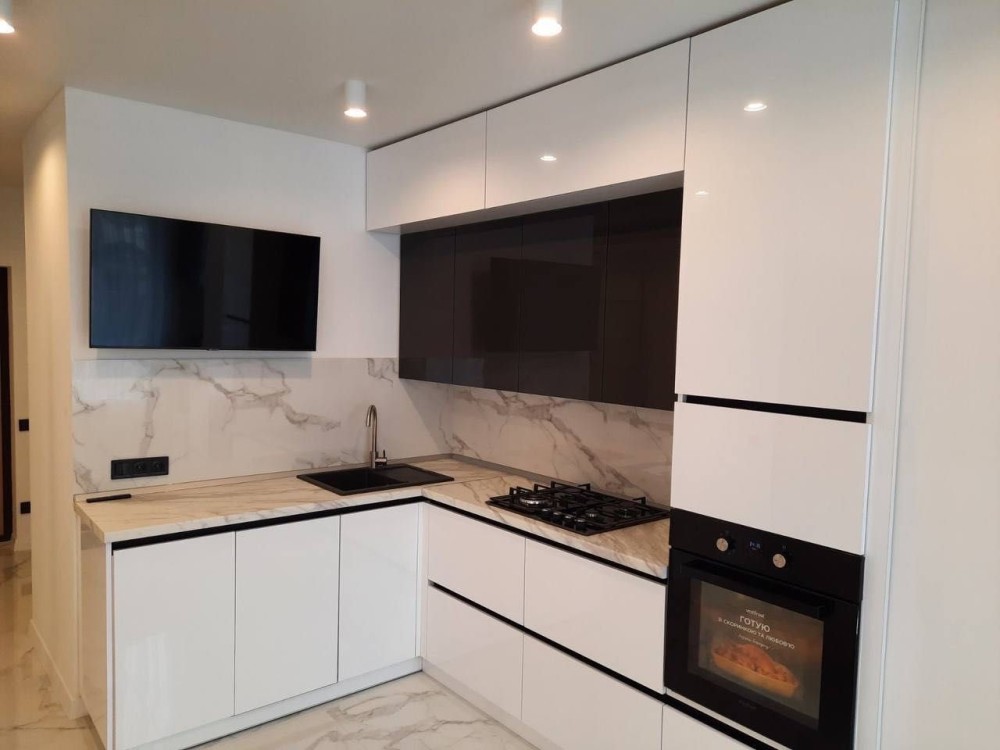 Техніка: газова поверхня, духова шафа, мікрохвильова піч, холодильник, телевізор, посудомийна машина.